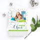 Festive and stylish holiday cheer card design features your favourite photo framed by bright and colourful confetti and chevron stripes. Personalise with your photo and custom text. Colours: white, light grey, navy blue, lime green, bright pink, turquoise blue, and poppy red.