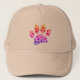Cartoon style cheetah paw print. Colourful version in pink, orange and purple.