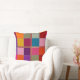 Pillow with an abstract retro geometric pattern in warm fall colours.
