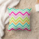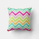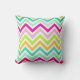 A 100% cotton throw pillow with a colourful striped chevron pattern.