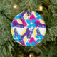 Colourful Chic Floral & Dot Pattern with Leaves Ceramic Ornament