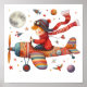 Colourful Children's Art Child Flying Old Aeroplan Poster