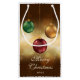 Destei's original illustration of different colour Christmas baubles on a lovely bokeh background. There are green, red and golden yellow colour Christmas baubles in the design. There are also two personalizable text areas.