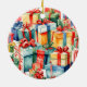 Colourful Christmas Gifts Watercolor Pattern Ceramic Ornament