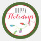 Colourful Christmas Light Happy Holiday/ Green Classic Round Sticker