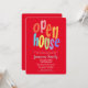 A colourful and fun Christmas open house party invitation. This fabulous invitation features bold modern typography on a red background. Easy to personalise with your own festive open house or business open house celebration details.