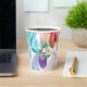Pretty paint pour design of three Christmas balls, is printed on paper cups. The Christmas balls are painted in a paint pour type design with a spray of a pine needle branch on the side. The colours in the design are shades of turquoise and teal, orange, purple, and pink. Thank you for shopping at CherylsArt on Zazzle.