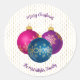 Colourful Christmas Ornaments- gold vertical design, pink blue purple ornaments, gold snowflakes