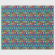 A wrapping paper designed with some Christmas symbols on a colourful square background. Merry Christmas!