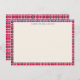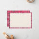 This Christmas note card features a festive red, pink, and green plaid border with a clean cream centre for your message. The design blends traditional holiday colours with a modern, cheerful feel. It works beautifully for thank-you notes, seasonal greetings, or everyday correspondence during the holidays. Personalised text at the top adds a polished, custom touch.