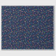 Navy blue Christmas gift wrapping paper with red, yellow, green, pink colourful Xmas tree lights pattern.
