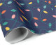 Colourful Christmas Tree Lights Pattern Navy Blue Wrapping Paper