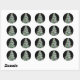 Colourful lights on a snow covered tree, black background sprinkled with colourful stars - small round sticker