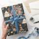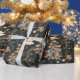 Delightful Christmas wrapping paper features whimsical trees and vibrant orange ornaments against a dark background, perfect for adding charm to holiday gifts and celebrations.