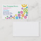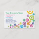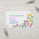 Modern and fun business card that could be used by just about anyone looking for a fun, colourful and stylish look that stands out from the crowd. This features brightly coloured circles in a random pattern along the right and bottom.