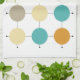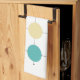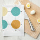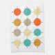 This colourful mid century modern kitchen towel features turquoise blue, two shades of orange, cream, and tan circles on a black lined grid. Add that bit of fun to your kitchen decor!