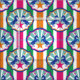 This fabric features a pattern inspired by vintage circus posters depicting a pair of blue, plumed show ponies set against a starburst in teal and stripes of vivid orange, pink and green which matches my Colourful Circus Fun collection of products.