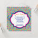 This easy to customise birthday party invitation is embellished with a plethora of treats from the circus such as popcorn, ice cream and peanut candy as well as a pair of plumed show horses all in vivid pink, blue, green, orange and turquoise colours perfect for a girl's big top themed party.
