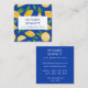 Colourful modern business card with citrus lemons on colourful blue background. Customise with your own contact details and job title. Please contact me if you require further help with personalisation. Original artwork from artists own digital artwork. © Zoe Chapman Design