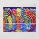 Colourful Cityscape Fun Folk Art Post Card