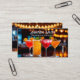 A colourful business card with a row of different cocktail glasses for a professional bartender