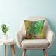 Modern abstract floral design in green brown and yellow colours. Customisable throw pillow template