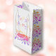 Colourful Colour Blop Girly Happy Birthday Small Gift Bag. Fun birthday bag with colourful colour blob - splash in pink, purple, orange and yellow colours. Personalise with the name and make a fun personalised gift bag for a birthday boy or girl.