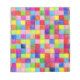 Squares of graph paper coloured in by hand with coloured pencils in random colours. No two adjacent squares have the same exact colour. Graph paper squares outlines are made up of light blue lines.