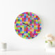 Colourful Coloured In Graph Paper Squares Pattern Large Clock