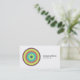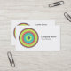A business card template with an attractive colourful concentric circle motif, creating a clean modern design suitable for many types of business. Company name and business on the front of the card. Name, address, telephony, email and web address on the reverse with a repeat of the motif. The card can also be further customised.