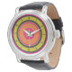 A colourful modern design made up of concentric circles in harmonious colours, with stylish numerals and hours and minutes scale.