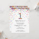 A cute, colourful idea for baby's first birthday party invitations! Featuring your baby's party details and a "1" in confetti, with fun rainbow confetti circles sprinkling from the top of the custom printed invitations.