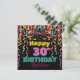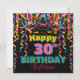 Celebrate in style with this vibrant birthday flat greeting card! Featuring colourful confetti and streamers on a sleek black background, this design is fully customisable to fit your event. The bold and cheerful text reads "Happy 30th Birthday" in a mix of bright yellow, pink, and teal colours, with the name of the celebrant elegantly written in a stylish pink script at the bottom. You can add a special message on the back. Once you've customised your design, you can download it as a digital file.