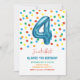 Colourful Confetti Four Balloon 4th Birthday Boy Invitation