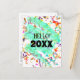 This new year designed postcard cover features colourful confetti and a teal squiggle. Personalise the text on the front and back, remove any text or click customise to select a different font style, size, and colour you prefer.