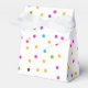 Colourful confetti have been created using Photoshop preset brushes. Different bright colours have been used on a white background to make the pattern look bright and cheerful. This bag can be used for all happy occasions like birthdays, bridal shower, graduation, weddings and baby shower.