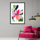 This colourful print makes a stunning addition to any space seeking a touch of nature with a modern twist. It features a contemporary flower design that is both simple and captivating. The flower, the star of the artwork, blooms in a gradient of pink hues, ranging from a delicate light pink to a vibrant dark pink, with a hint of dark coral adding an unexpected pop of colour.