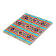 Modern eye-catching ceramic tile design featuring a seamless pattern made of geometric shapes in turquoise, pink, yellow, orange, white and black.