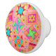 Colourful Coral Orange Quilt Patchwork Block Art Ceramic Knob