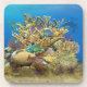 This design features an image of several colourful reef fish over a shallow coral reef. The illustration is by artist Dawn Witherington.