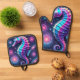 Colourful Cosmic Seahorse Oven Mitt & Pot Holder Set