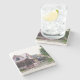 The coasters are gorgeous, a quality feel and heavy weight. They look like a precious archeological find. A rustic stone juxtaposed with a modern floral black and white print. I like the way the print goes slightly imperfect on the cut stone edges giving them a kind-of natural beauty.