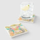 The coasters are gorgeous, a quality feel and heavy weight. They look like a precious archeological find. A rustic stone juxtaposed with a modern floral black and white print. I like the way the print goes slightly imperfect on the cut stone edges giving them a kind-of natural beauty.