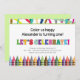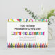 Crayons are the theme of this birthday invitation. They adorn the bottom of the invite, crayon markings are at the top and LET'S CELEBRATE! is in a variety of beautiful colours. You can easily insert name and any age.
