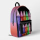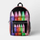 This unique designed backpack was created with digital oil paint on a tablet. Behind the crayons is a black colour background gives the image a 3D effect.