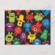 Colourful Crazy Fun Monsters Creatures Pattern Postcard