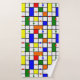 This towel set has a green washcloth, an orange hand towel, and a bath towel with a mid-century modern design of a grid with coloured squares and rectangles. It also has coloured circles placed on the grid lines. If you like the design but prefer different colours, message me.