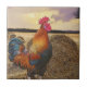 Colourful Crowing Rooster and Hay Bales Ceramic Tile