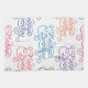 Illustrated pattern of colourful cursive text that says Happy Birthday! over a white backdrop