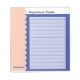 An aesthetic colour blocks notepad in Pink, Klein Blue and White combo, with a coquette touch of scallop edging. Customise a purpose heading, such as Memo, Shopping List, To Do List, Checklist etc. Add a name to personalise the notepad, making it special. This notepad is also ideal to put inside your bag and make on-the-go note-taking convenient.
